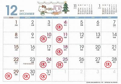 さて、12月の定休日をお知らせいたします。