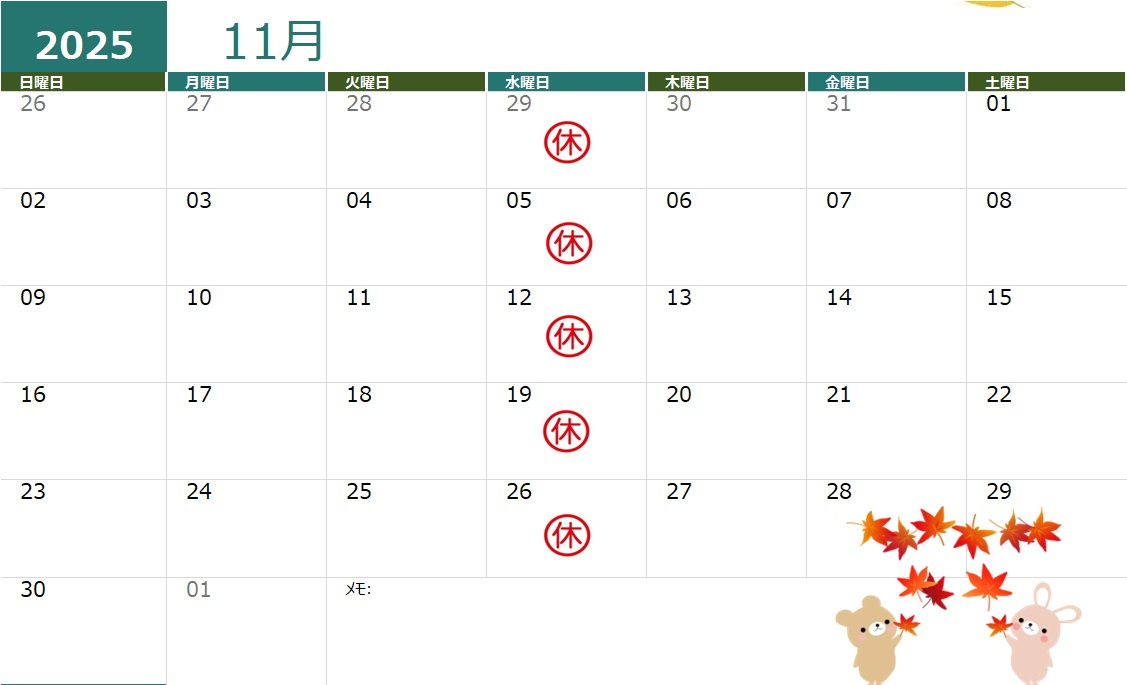 ~11月の定休日のお知らせ~